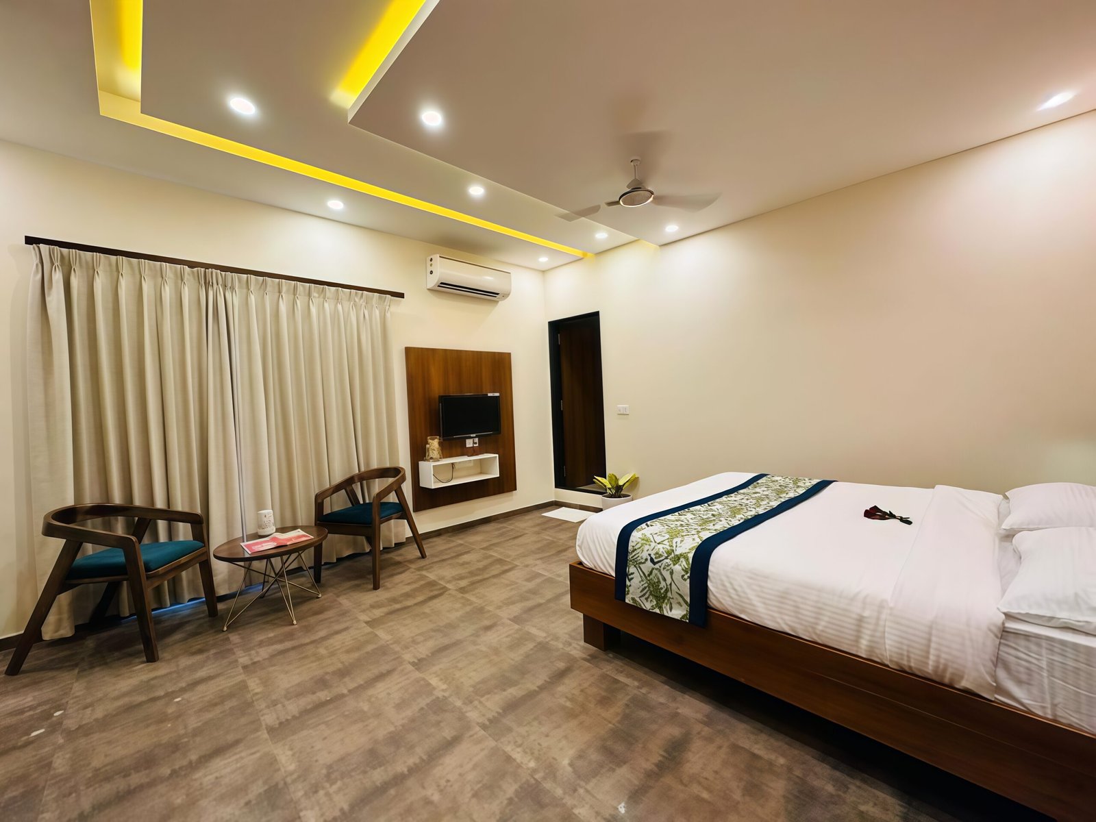 Our elegantly designed Executive Rooms offer the perfect blend of comfort and sophistication, ideal for both business and leisure travellers’. Each room features a spacious layout with contemporary wooden furnishings, ambient lighting, and warm, earthy tones that create a calming atmosphere. Enjoy a restful night’s sleep in the plush queen-sized bed with premium linens. The room is equipped with modern amenities including air-conditioning, a flat-screen TV, a well-appointed work desk, wardrobe, tea/coffee maker, and high-speed Wi-Fi. Select Executive Rooms also feature a luxurious bathtub, offering a relaxing retreat after a long day. Whether you’re here for work or a relaxing getaway, our Executive Room ensures a comfortable and memorable stay.